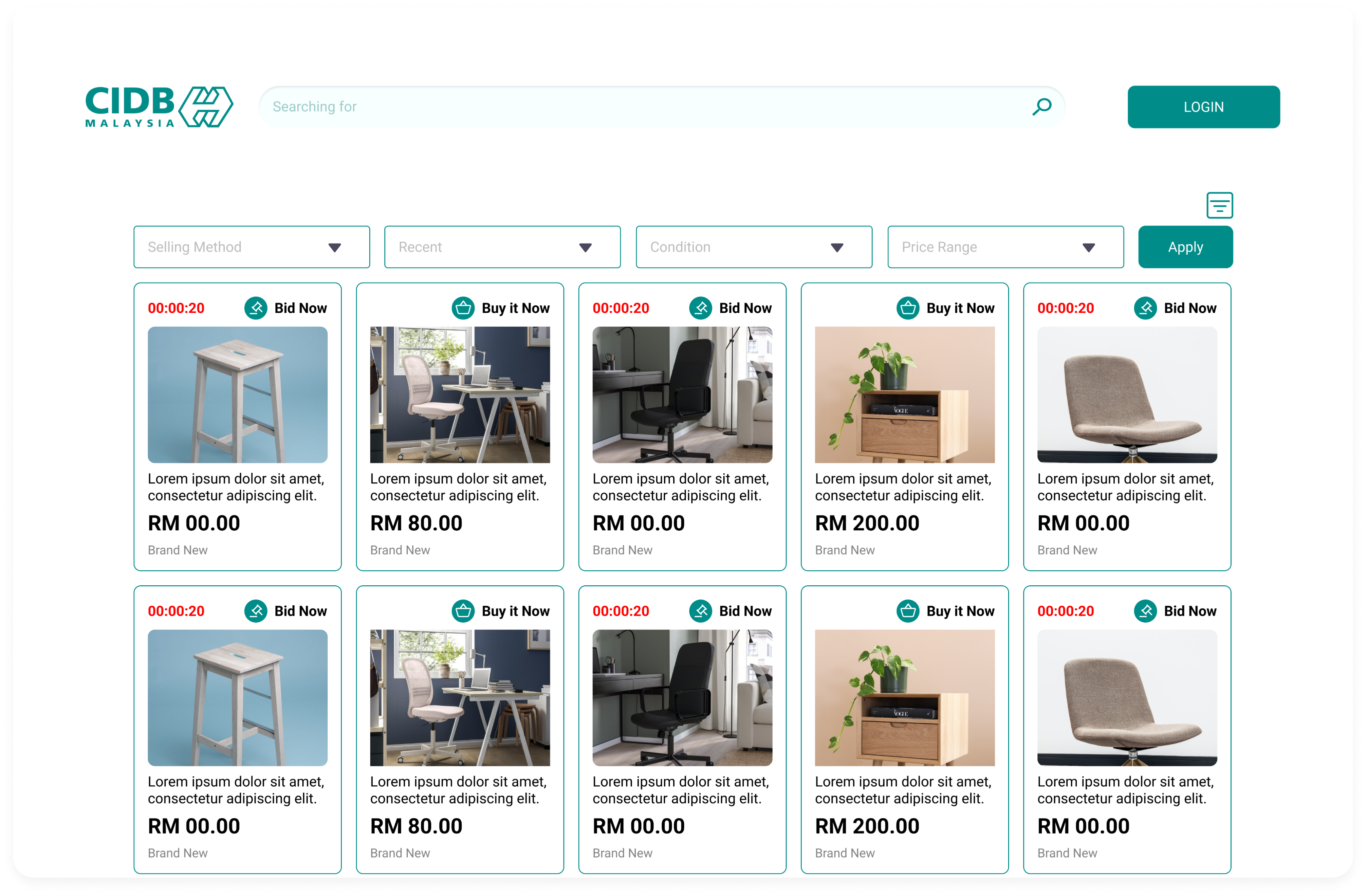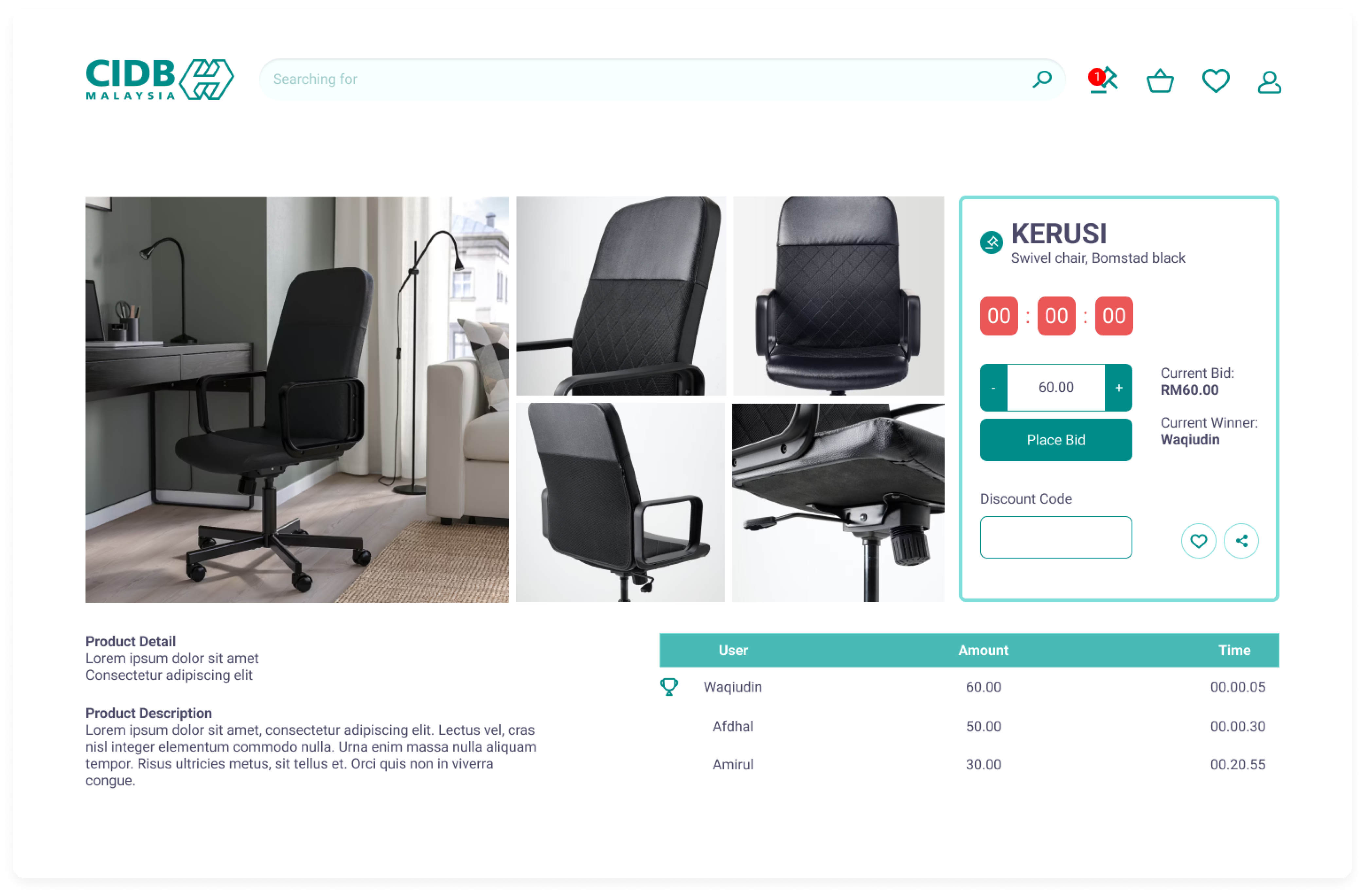 An online shopping platform for CIDB to sell their current assets which includes vehicle, furniture, computers, lighting and others. This system eases their process of selling their old assets to prepare for relocation to a new office building